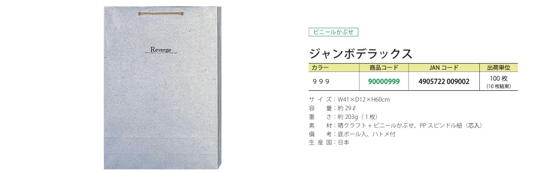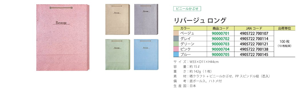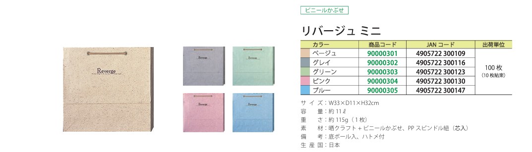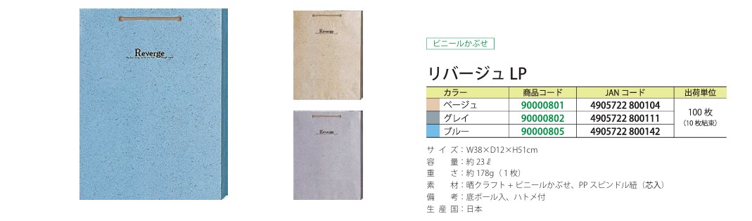 リバージュ 使いやすいデザインが魅力、ビニールカバー付きの紙袋