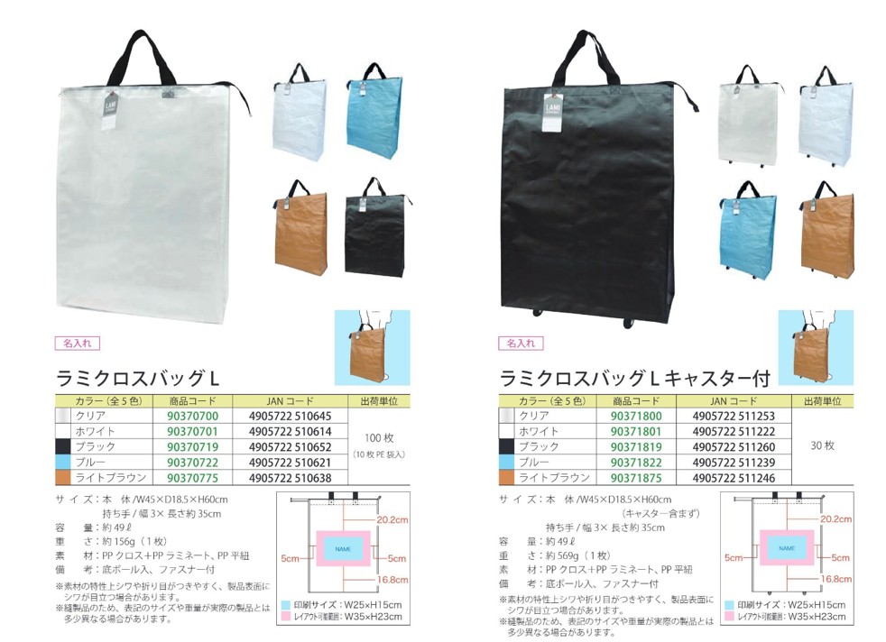 その他、ラクスルクラフツ製品「シャイニー」、「ソフトバッグ」のお取扱いがございます。